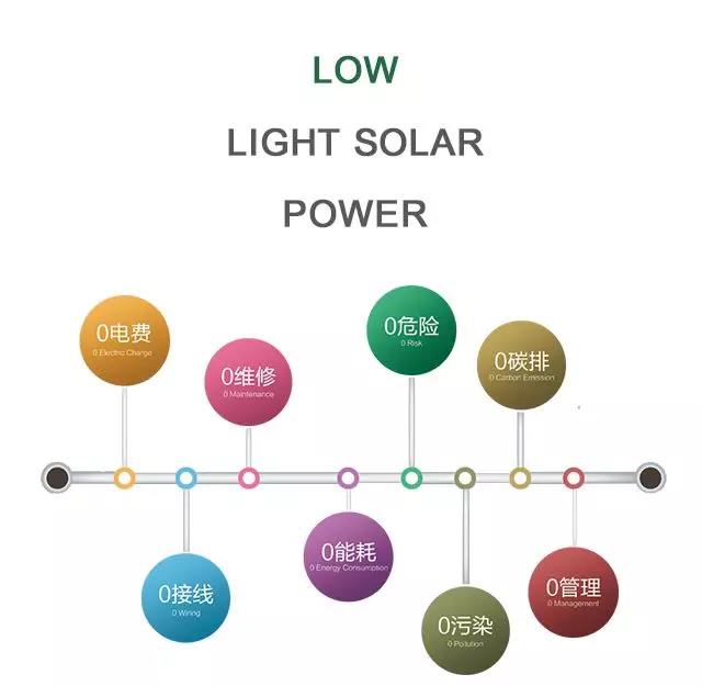 根據不同的W數自動追蹤鎖定光中最大能量值的充電模式,即使是連續的陰雨天氣只要在戶外微光夜夜明路燈也能夠得到很好的光電轉換達到了最大化的儲能效果。